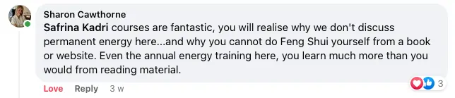 It is with unparalleled enthusiasm that I recommend Safrina Kadri’s Feng Shui Course. First and foremost, Safrina has the heart of a teacher and it really shows throughout her class. Moreover, she is truly compassionate and has command of the subject matter. Finally, she is a native English speaker. This matters greatly. In my humble opinion, the overwhelming majority of legitimate Feng Shui masters are teaching courses in Chinese (which if you are like me and only speak English, presents significant challenges). Avoid the phonies and ‘Fast Food’ Feng Shui at all costs.